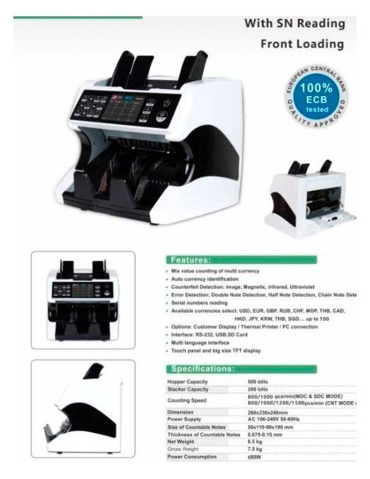 - Esta serie de contadores profesionales bajo costo de carga frontal de billetes realiza un conteo suave y rápido.